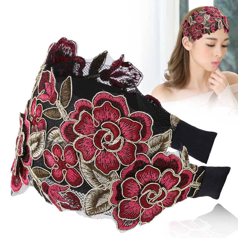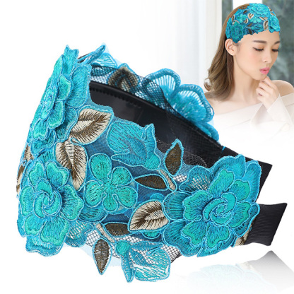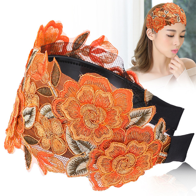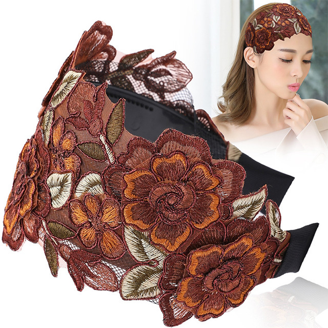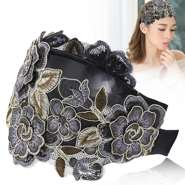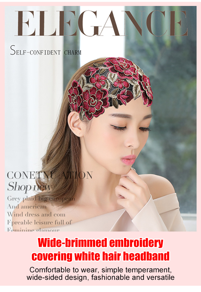 Wide-Brimmed Embroidery Covering White Hair Headband